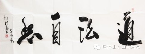 二、澄怀味象、迁想妙得。“迁想妙得”是东晋大画家顾恺之提出的画论观点,同样适用于书法。书法创作虽然不像绘画那样,直接以自然为描写对象,但是书法是从自然发源的。书法家非常强调向自然学习,从宇宙万物中获得启示,去创造书法的艺术形象。在中国书法史上,关于书法家向自然学习,从宇宙万物中汲取营养,迁想妙得,从而丰富艺术表现力的例子比比皆是:如张旭观公孙大娘舞剑器得书法神髓,怀素观夏云变化悟书法意趣,睹墙壁裂纹,领悟到书法贵在自然天成,黄庭坚从船夫划桨的动作中受到启发,认为胸中要有意象,才能下笔作书等。任法融道长深谙此道,他常常澄怀观道,迁想妙得,取法天地万物,使其笔下流溢出丰富的情致和意趣。如他书写的“月”字,在卧笔切入横笔长扫的飞白上,轻轻落上两点墨,如朦胧的月亮上,卧着两只顾盼灵动的鸟儿;又如飘垂的丝萝上,镶上两颗黑色宝石,升华到了知黑守白、以虚写实的化境。一个“道”字,犹如一寻道者,驾一叶扁舟,云游四海,或访名山大川,或拜哲人圣贤,探究民间善恶祸福之本源,天南海北四季物候之繁衍变化,终归明理悟道,修成正果。而“德”字则
