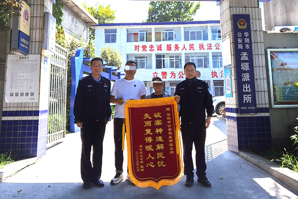 本网讯(华阴公安)9月25日,华阴市群众司女士将一面写有“破案神速解民忧,失而复得暖人心”的锦旗送到了孟塬派出所,用最质朴的方式表达对民警为其挽回4万余元损失的感激之情。