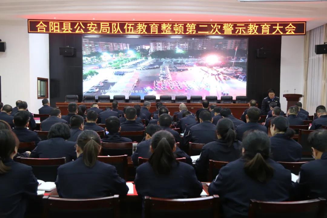 本网讯【合阳公安】为深入贯彻落实全面从严管党治警要求,充分发挥反面典型警示教育作用,进一步增强全局党员民警党章党规党纪意识,知敬畏、存戒惧、守底线, 4月8日晚,合阳县公安局召开公安队伍教育整顿第二次警示教育大会,局领导班子成员、各科所队长、指导员、机关全体民警及交警大队中层以上领导干部参加。