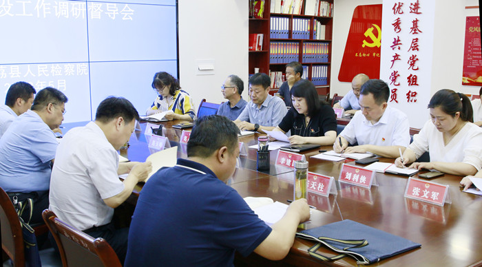 本网讯 5月24日,渭南市人民检察院党组成员、副检察长苏新宇一行四人深入大荔县人民检察院调研督导基层院建设工作。会议由大荔县人民检察院党组书记、检察长陈瑾主持,院班子成员、专职委员及各部室负责人参加会议。