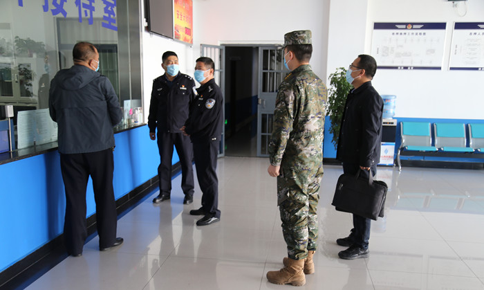 首先,陈康一行严格按照疫情防控标准要求,经过扫码、测温、核酸检测阴性结果、戴口罩等防护措施后进入所内,透过收押值班室玻璃窗看望慰问了坚守执勤一线的民辅警。