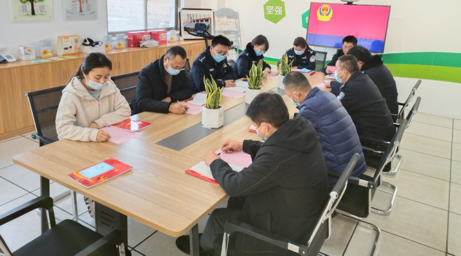 强化理论抓学习,对党忠诚铸警魂。以政治练兵为契机,常态化开展“高举旗帜、响应号召、奋进新时代、启航新征程”、“铭记嘱托、忠诚担当”等主题教育活动,组织民辅警对党的二十大报告逐字逐句学,谈体会、讲感悟,全体党员民警将牢记“三个务必”、“五个必由之路”,踔厉奋发、勇毅前行,不断坚定理想信念,持续铸牢忠诚警魂。