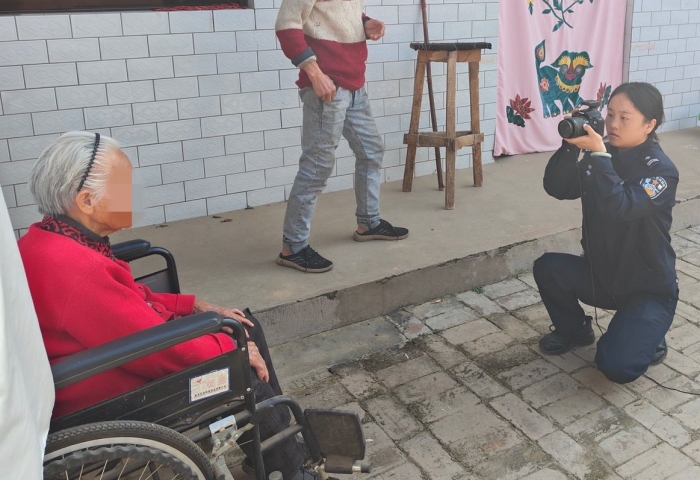 10月26日晚,金峪派出所民警在辖区开展夜间巡逻,期间遇到辖区李先生咨询:自己87岁的母亲身份证丢失,由于年纪较大,腿脚不便,无法到派出所进行补办。获悉该情况后,户籍民警于次日上午11时上门为其母亲办理身份证。办证过程中,民警悉心帮着家属将李某母亲抱至床上坐好,耐心为其整理服饰、调整姿势,顺利完成了证件照拍摄工作。