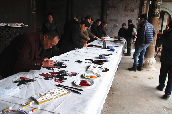 本网讯[记者 秦腔]3月24日至27日由浙江润哲文化投资有限公司、丝路情韵中国网、陕西丝路情韵文化传播有限公司联手组织筹办的“西部书画名家东阳行”走进浙江东阳市,进行了为期四天的书画交流展示活动,来自西部的十位书画名家展示了精湛的书法绘画技艺,四天的交流活动中十位书画家为东阳市有关领导、社会名流、优秀企业家及部分群众展示了各自的才艺,书写了400余幅书画精品,受到社会各界一致好评。