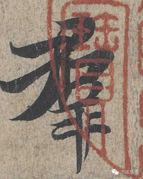 不难发现,“永”字重笔放在了最后的捺笔,但是下面的“和”字一个长横快速平衡,相互映衬。王羲之,很细节,很聪明。