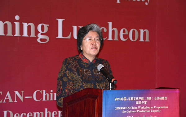 本报讯[记者 秦腔]2016年12月5日至12日,“2016中国—东盟文化产能(电影)合作研修班”在浙江省东阳市举办。研修班由中国—东盟中心、中国国家新闻出版广电总局电影局、浙江省新闻出版广电局共同主办,东盟财经社、浙江省东阳市六石街道办事处、东阳市润哲文化产业投资有限公司共同承办。中国—东盟中心秘书长杨秀萍,浙江省新闻出版广电局副局长王国富,东阳市副市长蒋银生,六石街道办事处党工委书记滕恩良等出席开班仪式并致辞。来自东盟十国的文化、旅游或电影管理机构及电影等文化企业代表,与中方相关机构和文化企业代表及媒体记者等100余人,出席此项中国—东盟之间首次举办的以“文化产能”合作为主题的交流活动。