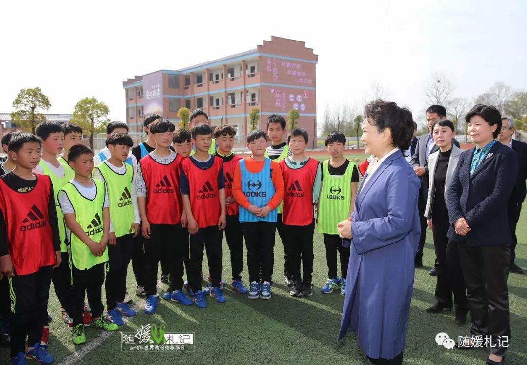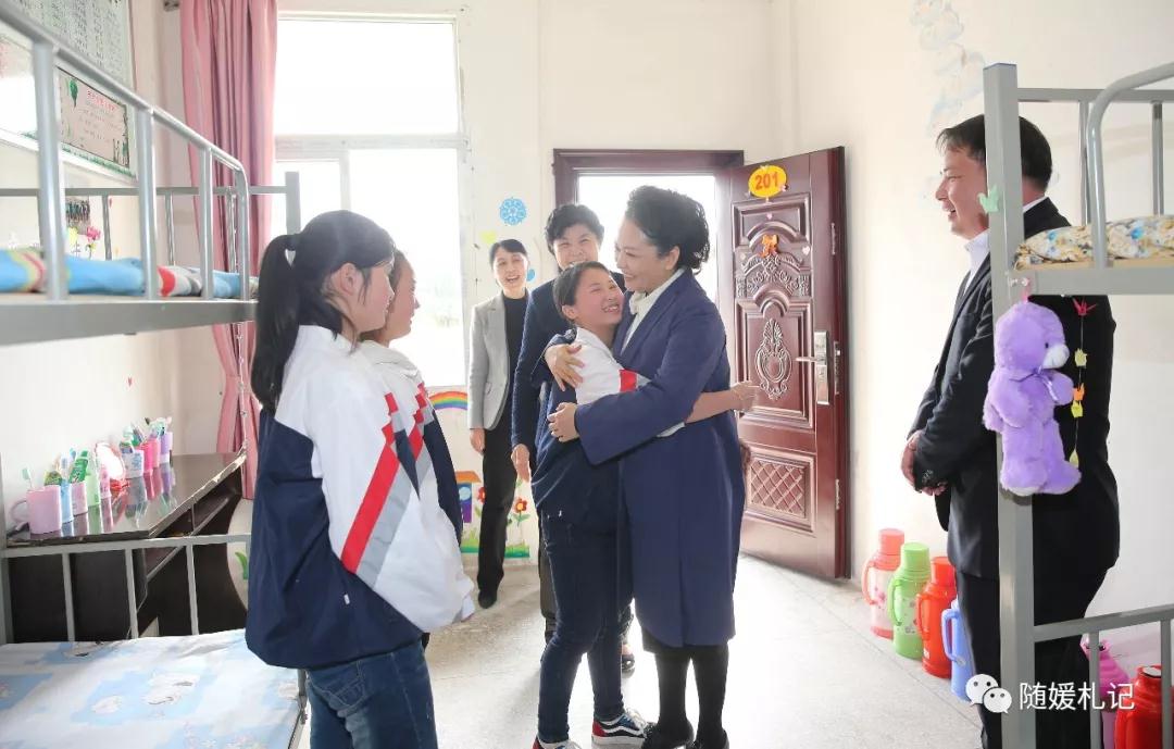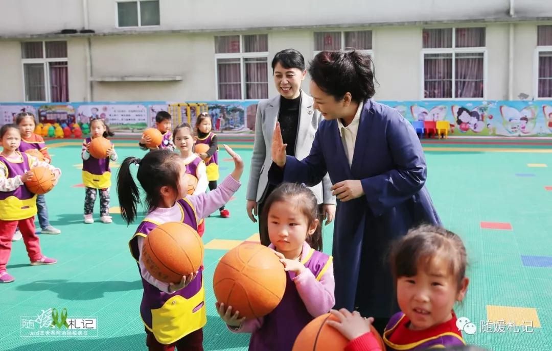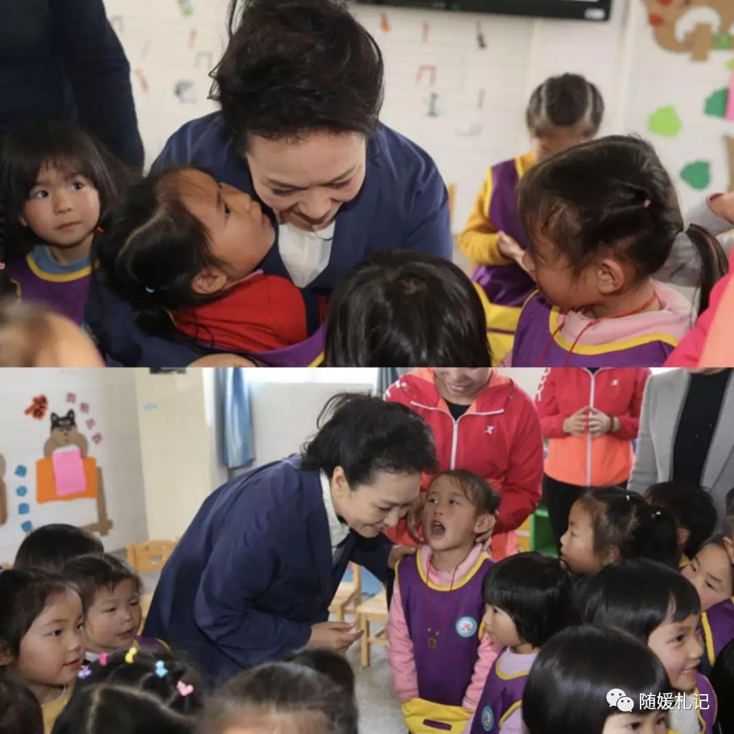 在蒲团乡中心幼儿园,彭丽媛与老师和孩子们亲切交流,鼓励孩子们从小养成良好生活习惯,加强体育锻炼,有效预防传染疾病。