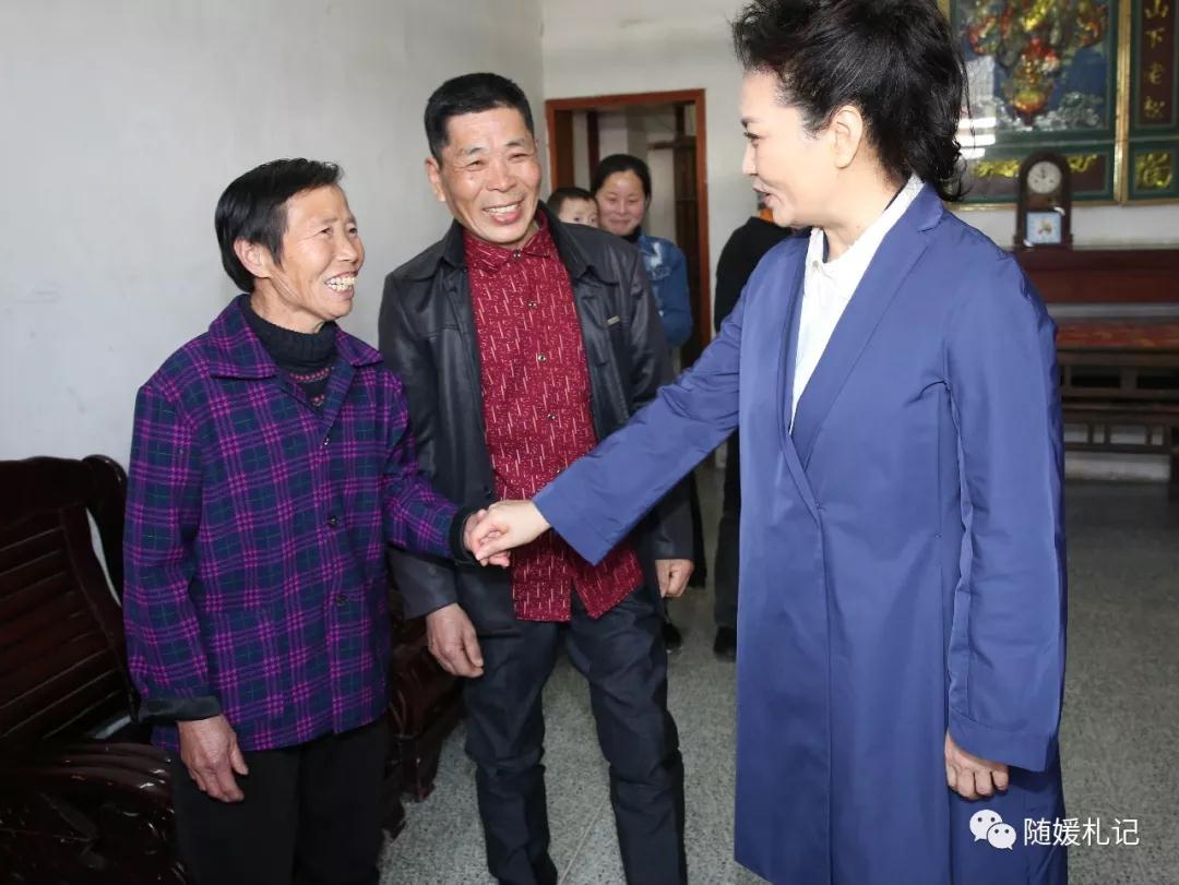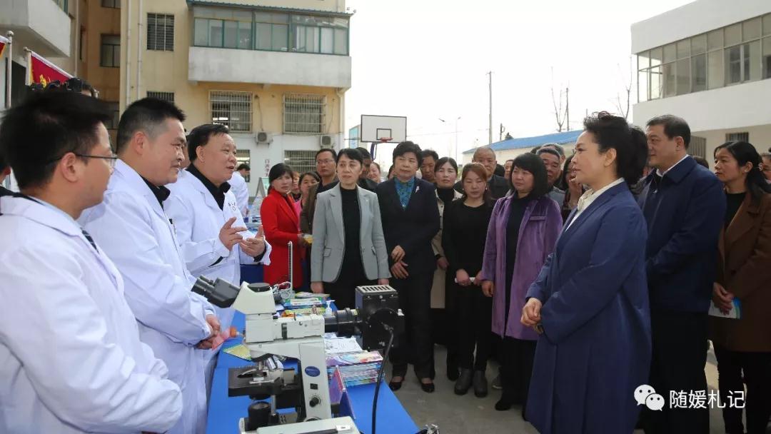 在小庙村,彭丽媛亲切看望慰问结核病康复者,察看村卫生室,了解基层结核病防治情况,并慰问正在开展结核病防治宣传工作的医务人员,同前来咨询的村民等交流结核病防治知识。