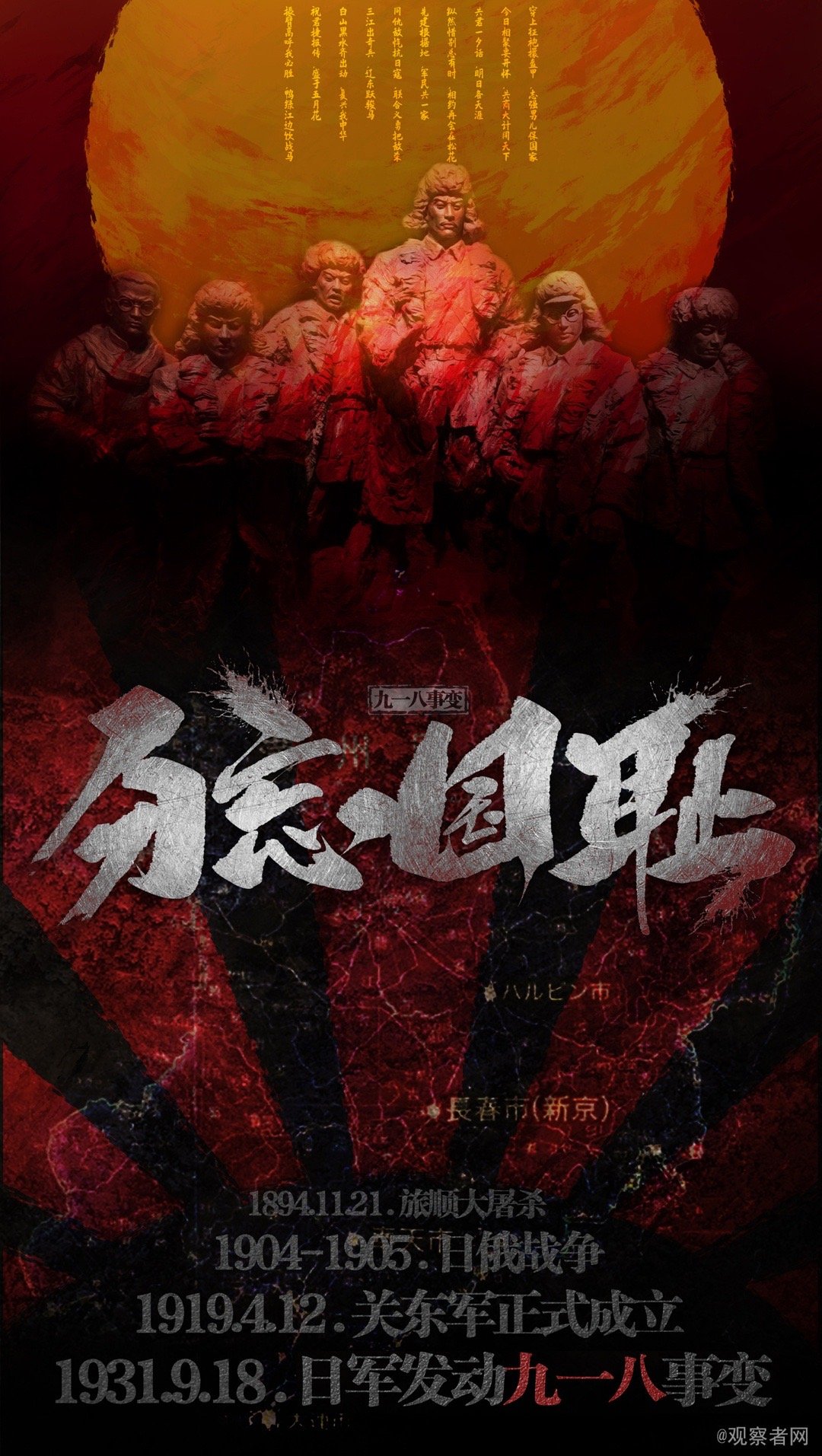 【勿忘国耻!#九一八事变90周年#】1931年9月18日晚10时20分,日本关东军在石原莞尔、土肥原贤二和板垣征四郎的密谋策划下,炸毁了沈阳北郊柳条湖附近的一段南满铁路,栽赃嫁祸于东北军。以此为借口,日本关东军向东北军发起猛烈攻击,炮轰沈阳北大营和兵工厂,这就是震惊中外的“九一八事变”,是日本大规模武力侵华、十四年艰苦抗日战争的开端。