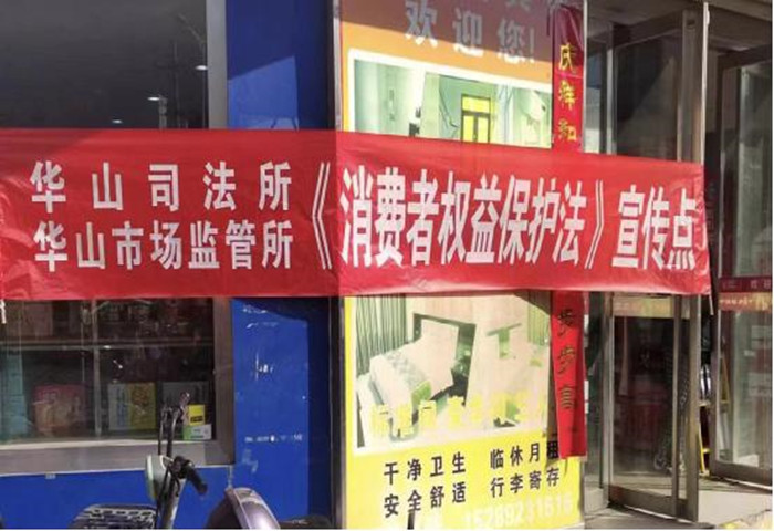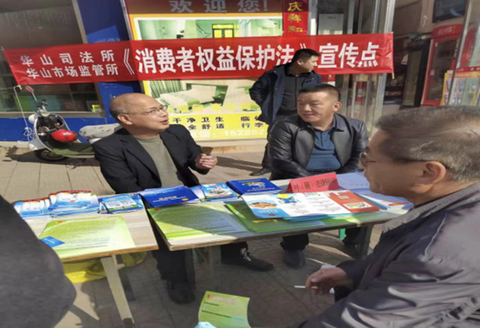 本网讯 (闫聪蓉 王启华) 在3·15国际消费者权益日来临之际,华山司法所联合市场监管所在华山镇市场路口开展法治宣传。
