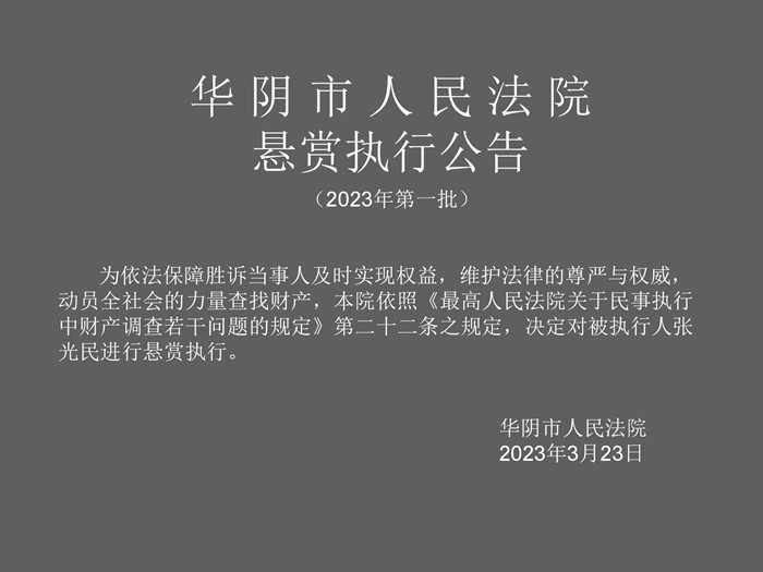 华阴市人民法院2023年第一批悬赏执行名单