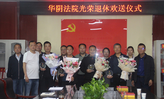 本网讯 (王 佩) 为切实增强退休干警的荣誉感和归属感,激励全体干警踔厉奋发、勇毅前行,5月25日,华阴法院隆重举行退休干警欢送仪式,院班子成员及相关退休干警参加欢送仪式。