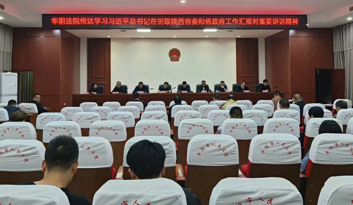 本网讯(王 佩) 5月29日上午,华阴法院组织召开全体干警会议,认真学习习近平总书记历次来陕考察重要讲话重要指示精神,深入学习贯彻习近平总书记在听取陕西省委和省政府工作汇报时的重要讲话精神,并研究贯彻落实意见。党组书记、院长万宏革主持会议并讲话。