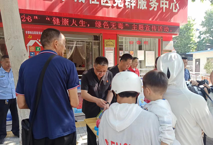 本网讯 (冉 强) 为进一步加大禁毒宣传教育工作力度,提高群众拒毒、防毒意识,6月26日,华阴法院刑事审判部门干警前往太华路街道办事处所辖社区开展禁毒普法宣传活动。