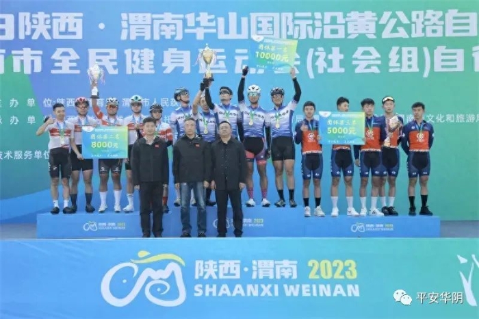 本网讯 10月22日,2023陕西·渭南华山国际沿黄公路自行车赛暨渭南市全民健身运动会(社会组)自行车赛在韩城发车。比赛赛道以韩城古城为起点,华阴市马踏飞燕广场为终点,华阴赛段线路途径沿黄公路渭河大桥--310国道--东环路--马踏飞燕广场,全长15.71公里(渭河大桥全长4.71公里)吸引了来自陕西各地的670余名山地自行车骑手和骑行爱好者参加比赛。