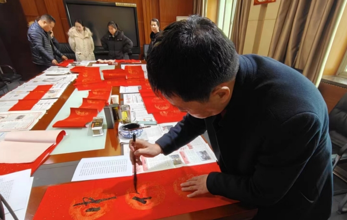 活动现场,法院的书法爱好者们挥毫泼墨、笔走游龙,一笔一划间将浓浓的祝福倾注笔端。干警们忙前忙后,铺纸晾晒,穿梭在一片红火之中,欢声笑语交织着氤氲墨香。“龙飞凤舞迎新岁,福禄双全贺佳节”、“家和百业兴千福,龙年户纳八方财”……一幅幅春联载着浓浓的年味和美好的新春祝愿当场“出炉”,来领取春联的干警络绎不绝,现场到处洋溢着迎春接福的节日氛围。