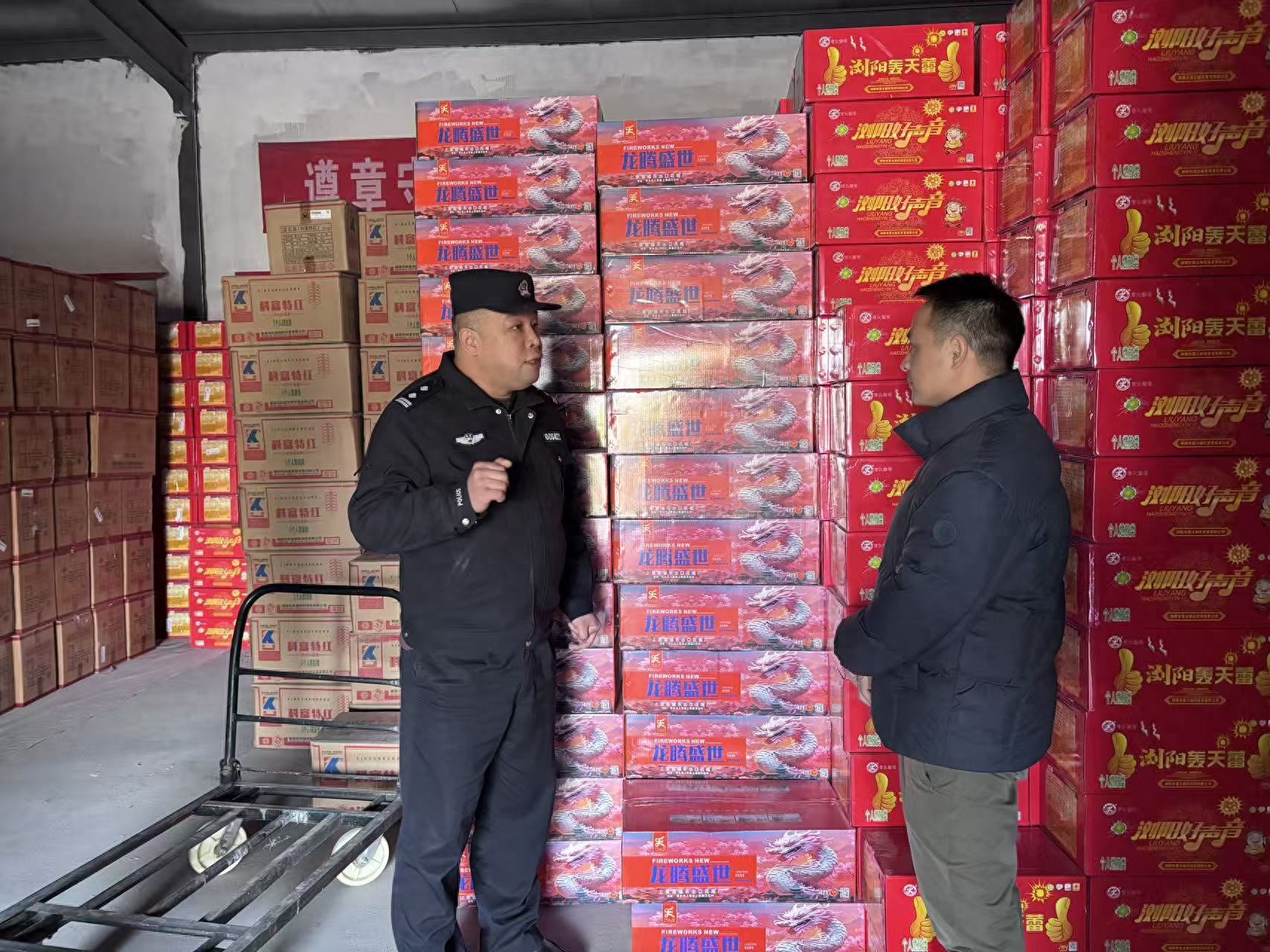 检查过程中,民警重点查看经营资质、储存条件、消防设施配备等情况,仔细核对烟花爆竹的进货渠道、产品合格证,严厉查处无证经营、超量储存、销售伪劣产品等违法违规行为。同时,民警现场向经营业主及从业人员宣讲烟花爆竹安全管理相关法律法规,强调储存的安全注意事项,督促其严格落实安全生产主体责任,定期开展安全隐患自查自纠。