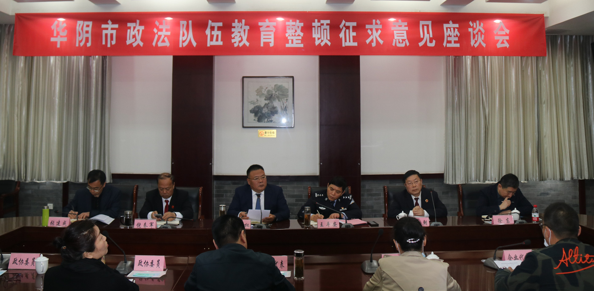 会上段宝权同志通报了我市政法队伍教育整顿的总体要求、目标任务、工作措施及相关工作进展情况,表明了开展教育整顿的决心和信心。与会代表实事求是谈感受,开门见山讲问题,各抒己见、畅所欲言,纷纷表示华阴市政法队伍建设总体向好,群众满意度显著提升,为维护社会大局稳定、保障人民安居乐业作出了贡献。代表们结合各自工作实际,从加强司法辅助人员管理、强化政法队伍能力素质建设、规范行政执法行为、深化多元矛盾纠纷化解、创新法治宣传教育载体、引导群众自觉遵法守法、提高法律意识和法治观念、维护自身合法权益等方面入手,畅所欲言,对全市政法工作和政法队伍建设提出了有针对性的意见和建议。