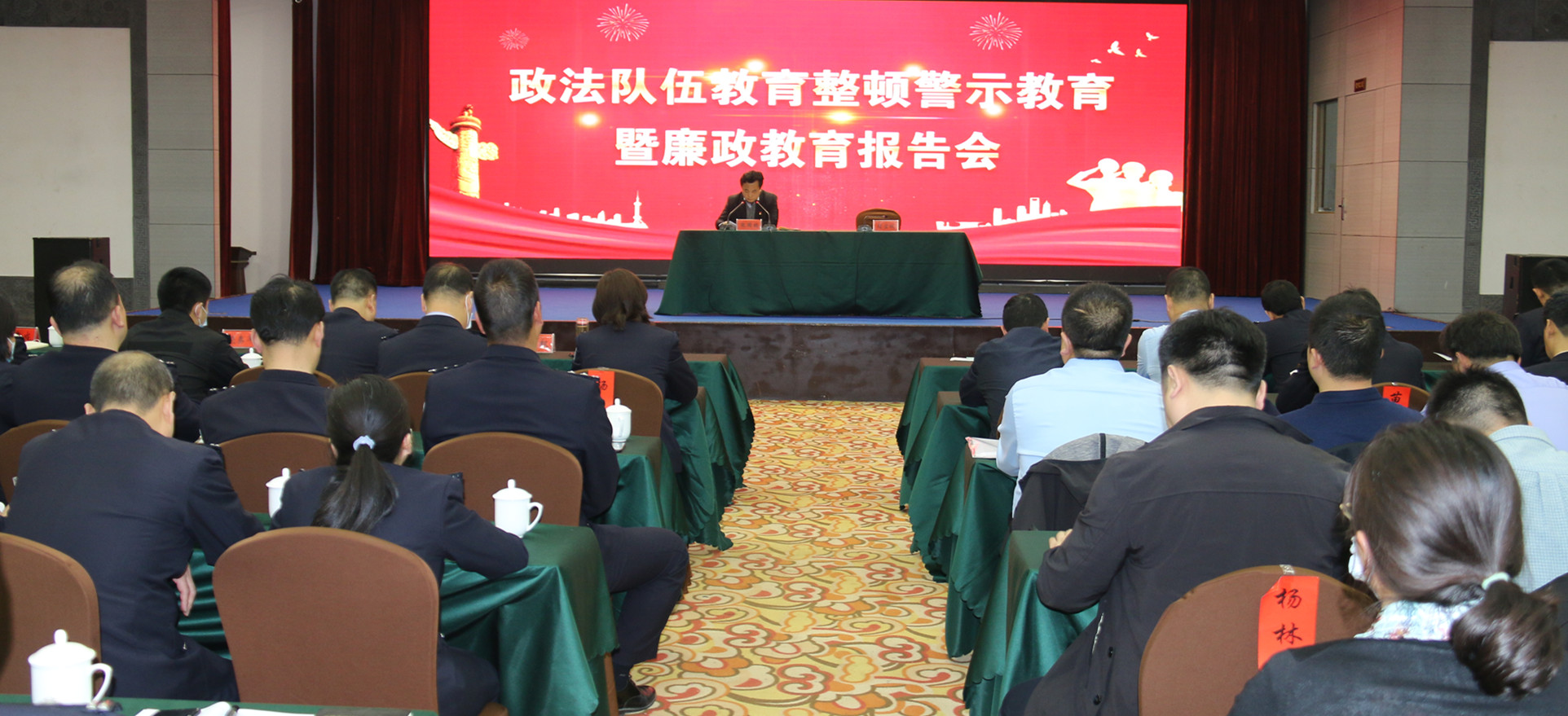 本网讯 (杨 婷)为切实筑牢政治忠诚,抓好学习教育,全面正风肃纪、反腐强警。3月31日,华阴市召开政法队伍教育整顿警示教育暨廉政教育报告会。市委常委、纪委书记、监察委主任张国栋出席会议并作报告,市委常委、政法委书记段宝权主持会议。华阴市委政法委、政法各部门领导班子成员,政法单位全体政法干警、书记员、协警、公益性岗位的工作人员、各镇(街道)政法委员等350余人参加会议。