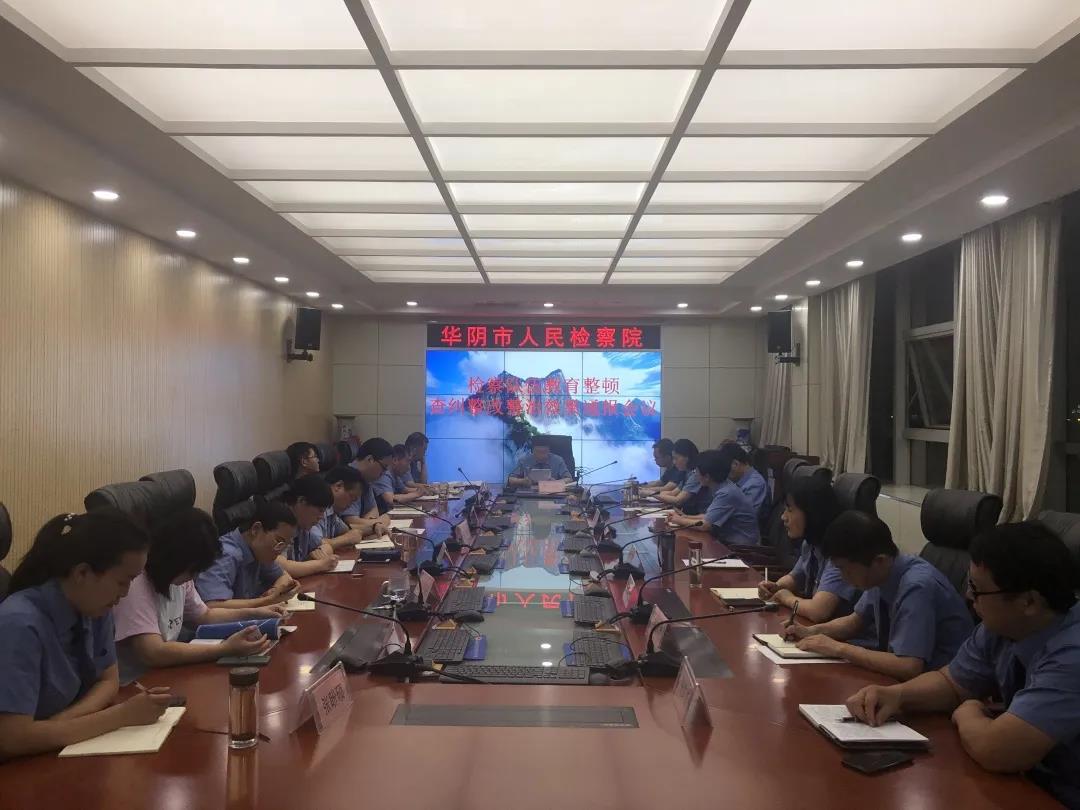 本网讯 【史文聪 杨婷】 6月2日下午,华阴市人民检察院召开检察队伍教育整顿查纠整改整治效果通报会议,院班子成员分别对教育整顿查纠整改环节的整治情况进行通报并就整治情况作出承诺。会议由院党组书记、检察长严刚朝主持,华阴市委政法委副书记张建成到会指导,全体班子成员及各部门负责人参加。