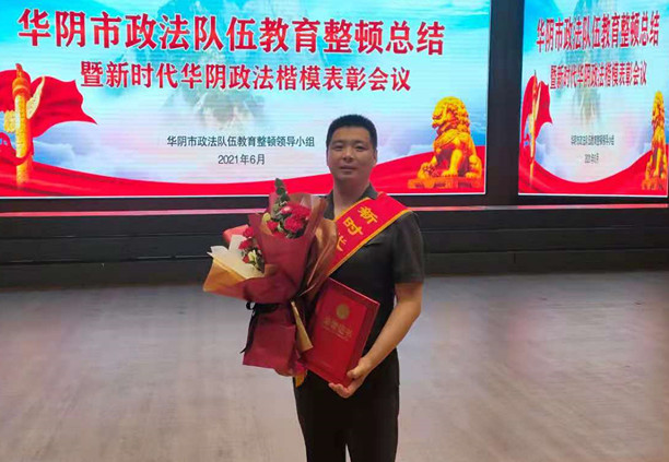 本网讯(王 佩)6月28日,华阴市政法队伍教育整顿总结暨新时代华阴政法楷模表彰会议召开,会上,华阴法院肖鹏同志被表彰为新时代华阴政法楷模。