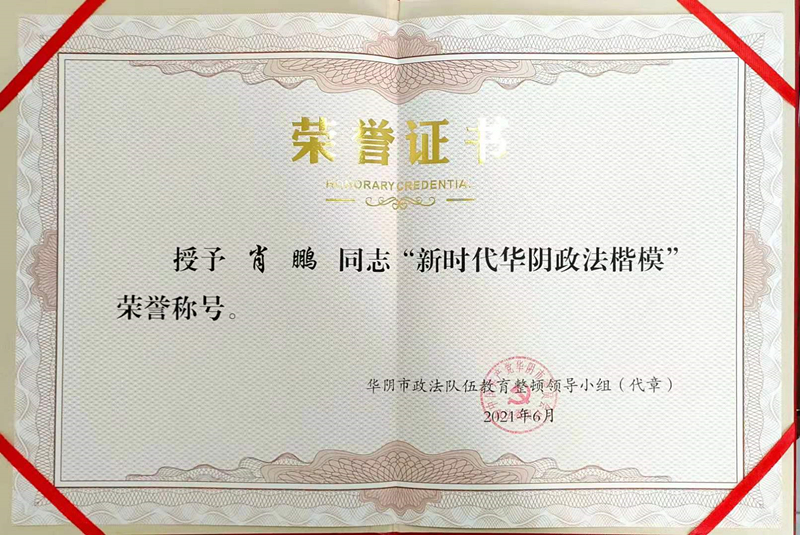——华阴法院肖鹏被表彰为新时代华阴政法楷模