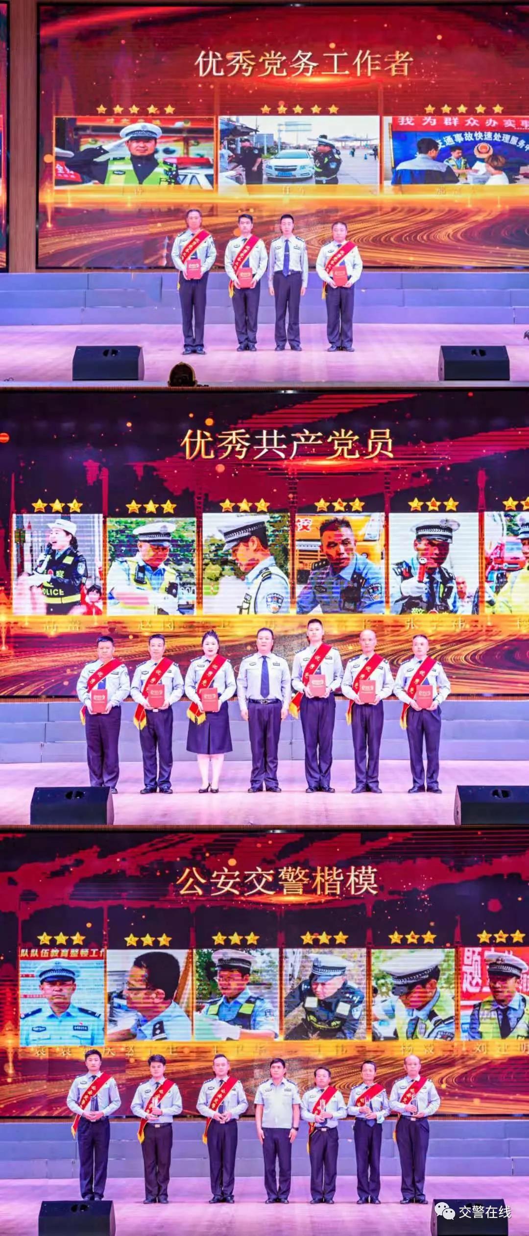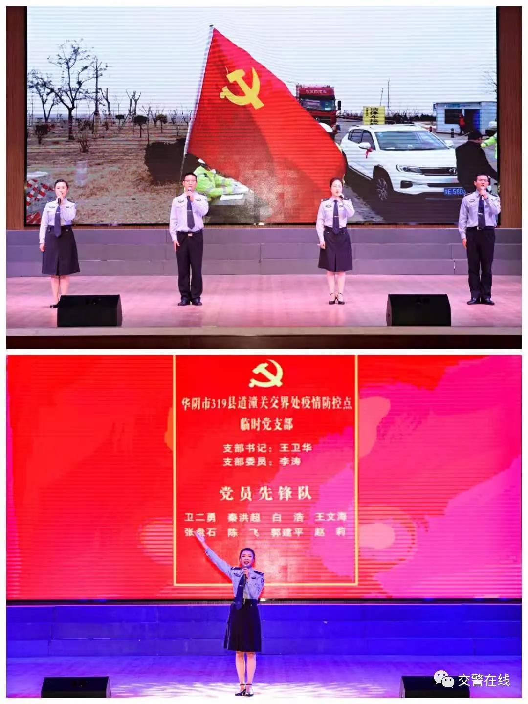 活动现场,精彩纷呈。诗朗诵《受命危难之时 护一城人安危》、演讲《逆行路上的荧光绿》,深情讲述了华阴交警在新冠肺炎疫情期间舍小家为大家,不分昼夜打赢疫情防控阻击战的抗“疫”故事。快板《学习党史踏歌行》、经典诵读《向党说句心里话》倾情演绎了全体党员民警不忘初心、砥砺前行、勇挑重担、奋力担当的坚决信心。舞蹈《不忘初心》、歌伴舞《我和我的祖国》优美的舞姿、悦耳的歌曲抒发着对党的忠诚、对祖国和人民的热爱。小品《放管服》、《交警与醉汉》,以诙谐幽默的方式展现了民警在日常工作过程中秉公执法、一心为民的工作作风。朴素豪放的老腔《华阴交警保平安》唱出了华阴交警保卫人民群众的铮铮誓言。大合唱《红旗飘飘》唱出了全体民辅警对五星红旗的自豪和对祖国深沉的爱。同时,为了树立典型、表彰先进,激励各党支部和广大党员民警奋发向上,在晚会上,华阴交警大队党总支对3名优秀党务工作者、6名优秀党员、6名交警楷模及5名党龄超过50年的退休老民警予以表彰,他们用自己的行动诠释了共产党员的先锋模范作用,成为广大党员干部学习的榜样。