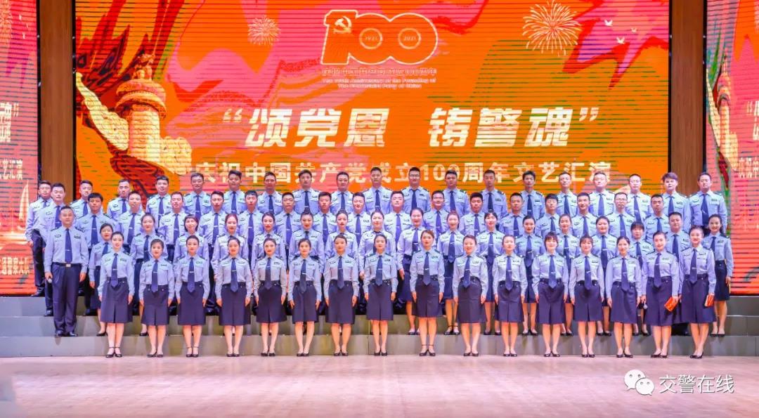 最后,本次文艺汇演在大合唱《中国人民警察警歌》中落下帷幕。慷慨激昂的旋律、嘹亮澎湃的歌声、整齐划一的动作,讲述着华阴交警对党忠诚、服务人民、执法公正、纪律严明的铮铮誓言。整场演出主题鲜明、格调宏伟、气势磅礴,唱响了“颂党恩 铸警魂”的主旋律,饱含了华阴交警对党地真情告白和深深祝福,获得现场观众的阵阵掌声。