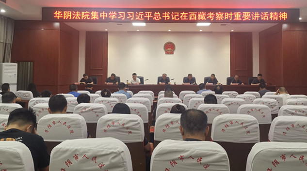 本网讯(龚 莉)8月16日,华阴法院组织全体干警集中学习习近平总书记在西藏考察时重要讲话精神。党组书记、院长饶秦军主持会议,全体干警参加。