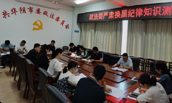 本网讯(王 蕊 张建成)为贯彻落实好换届纪律相关要求,切实保障换届风清气正,9月13日早,华阴市委政法委在三楼会议室进行了严肃换届纪律知识测试,全体领导班子成员、机关党员干部20余人参加。