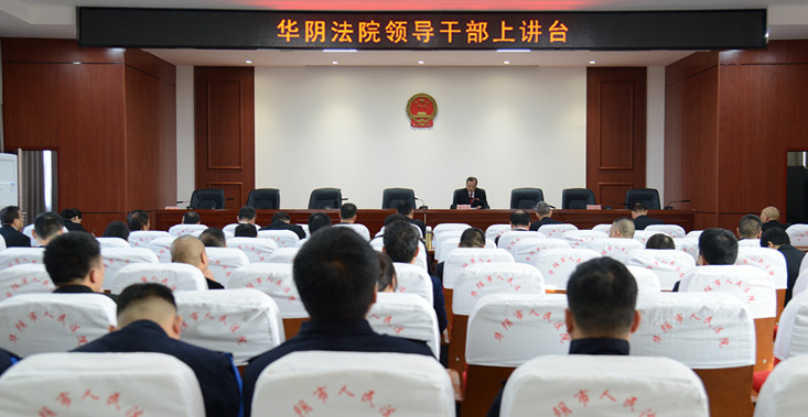 本网讯(王 佩)10月18日,华阴法院开展领导干部上讲台,切实推动“高举旗帜、响应号召、奋进新时代、启航新征程”主题活动。