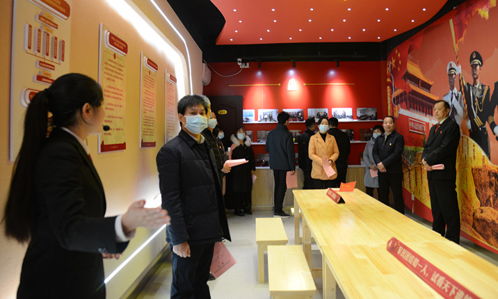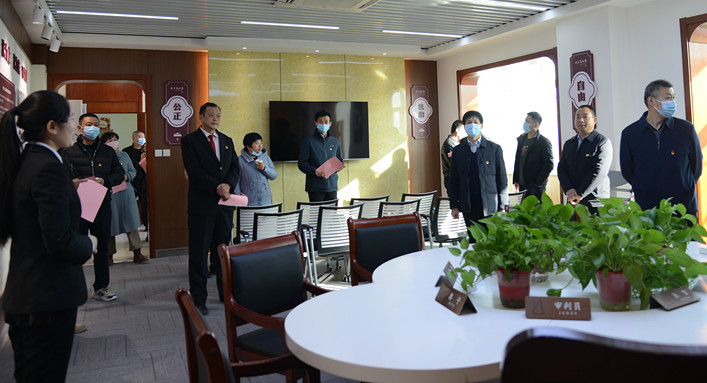 随后,在讲解员的引领下,观摩团成员先后参观了诉讼服务中心、家事审理中心、速裁中心、涉军维权中心、党员活动室和文化长廊,全方位了解华阴法院机关党支部浓厚的党建工作氛围和在党建工作方面取得的实际成效。