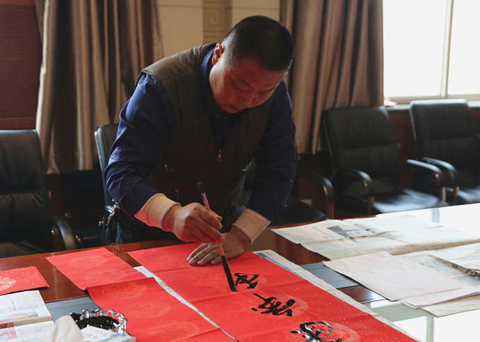 活动现场,墨香四溢,热闹非凡,处处洋溢着暖暖的温情和节日的喜庆氛围。华阴法院书法爱好者张钢铁、严建业 饱含热情,挥毫泼墨,手起笔落间,皆是歌颂美好生活、祝福吉祥如意。一副副象征平安和谐,喜庆欢乐的春联,既有辞旧迎新的美好愿望,更有砥砺奋进的励志高歌。