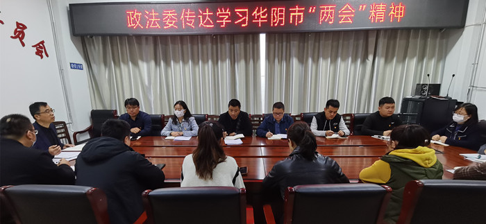 本网讯 (丁雨欣 张建成)3月22日,华阴市委政法委组织召开机关干部会议,传达学习华阴市“两会”精神,并就贯彻落实会议精神作了安排部署,会议由常务副书记张建成同志主持学习。