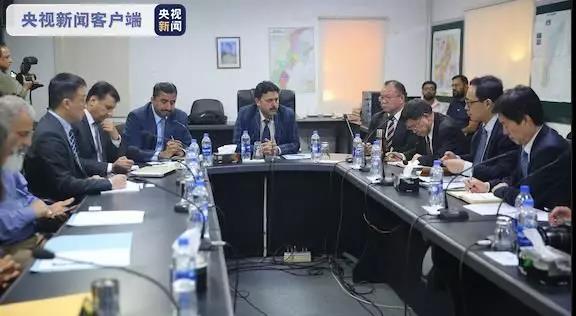△中国蝗灾防治工作组与巴基斯坦粮食安全与研究部官员讨论援助灭蝗方案