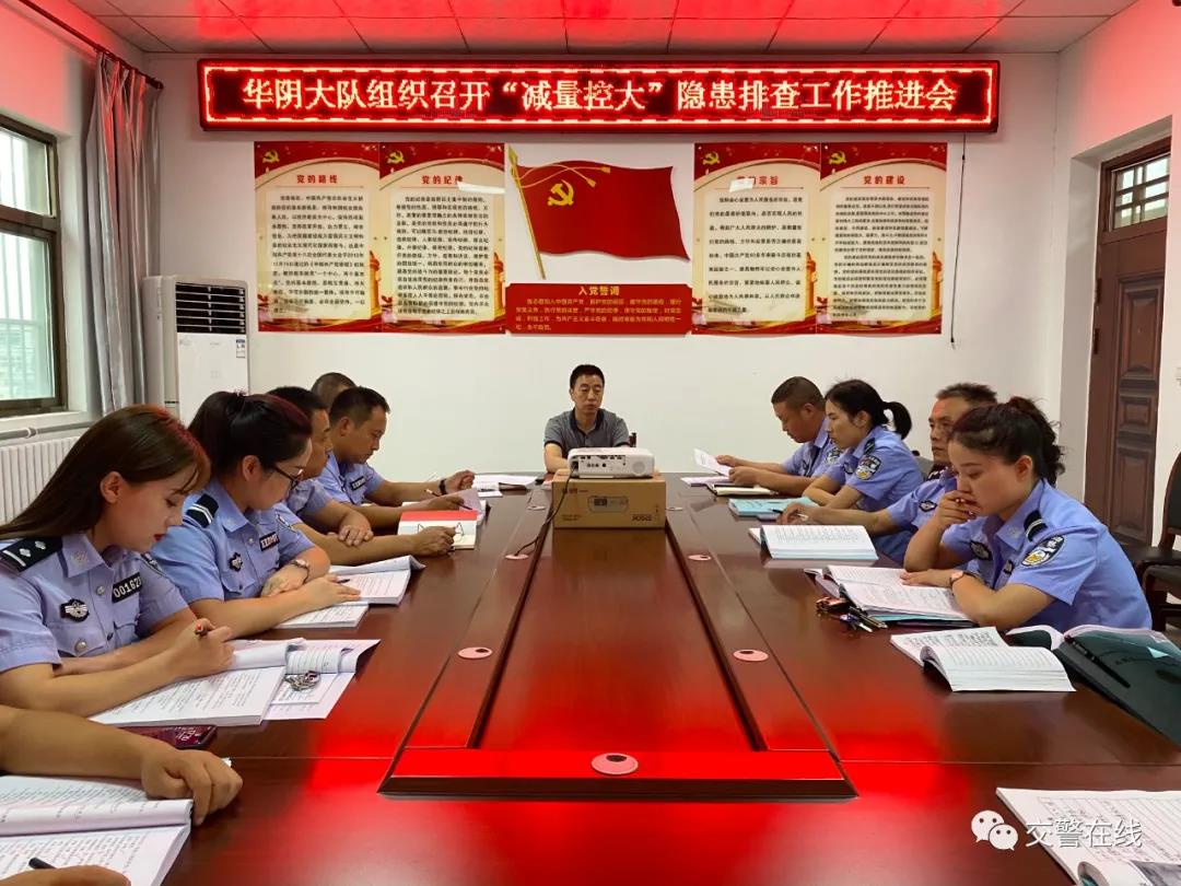 本网讯9月16日下午,华阴交警大队车管所召开了“减量控大”隐患排查工作推进会,认真贯彻落实支队会议精神,分析重点车辆及驾驶人源头隐患排查清理工作中存在的问题短板,进一步强化重点车辆各驾驶人源头管控措施,全力消除交通安全隐患。车管所所长刘勇军主持会议,大队教导员高晓文出席会议并就下一步的工作做了要求和部署。车管所全体人员参加了会议。