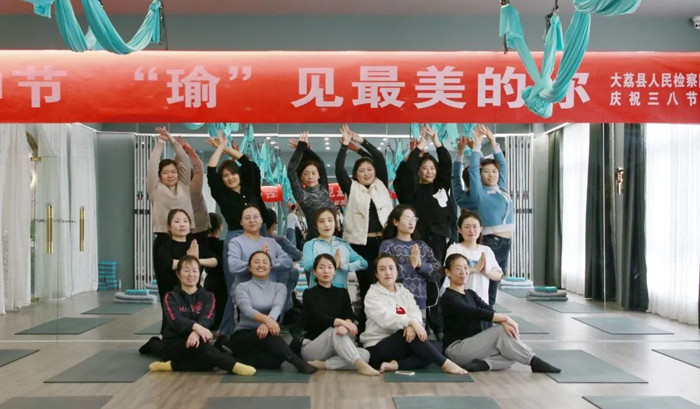 3月3日,大荔县人民检察院工会组织女干警开展瑜伽健身活动。在优美舒缓的瑜伽音乐伴奏下,随着专业的瑜伽教练轻柔的口令与示范,大家认真地做着每一个动作。呼吸吐纳,伸展脊柱,虽然刚开始动作有时做的不到位,身体也有些僵硬,但是随着不断的练习,大家的感觉越来越好。舒缓的音乐,放松的身体,给大家带来不一样的轻松愉快,身心得到了极大放松。