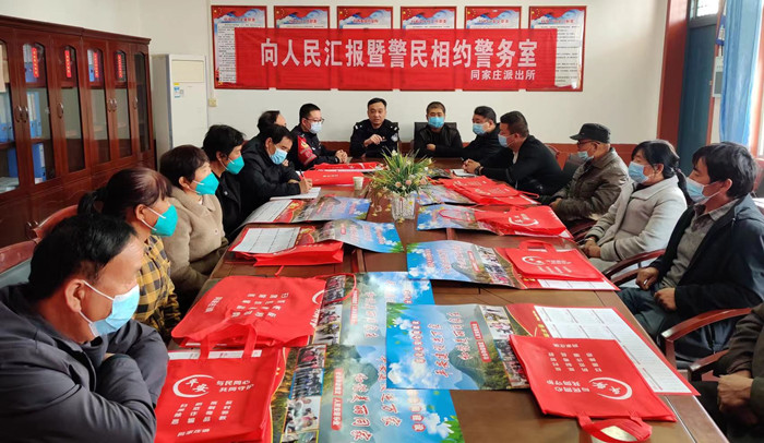本网讯 (通讯员 张博)为保证辖区平安稳定,拉进警民距离,11月5日,同家庄派出所所长师刚带领民警深入辖区如意村,开展向人民汇报暨相约警务室活动。