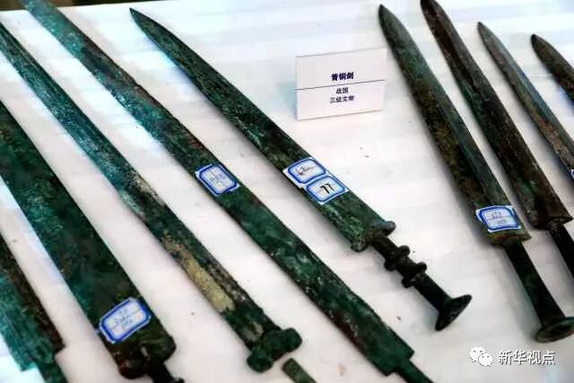 被追缴回的战国时期的青铜剑。(11月17日摄)
