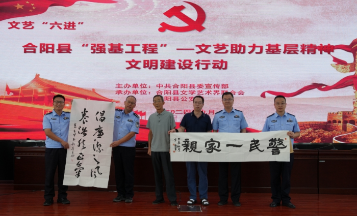 活动现场,县书协、美协分别向合阳县公安局赠送了《警民一家亲》《倡廉洁之风 养浩然正气》书法作品和《秋山对弈图》《空谷幽香》等美术作品。现场民辅警纷纷表示活动走“新”更入“心”。