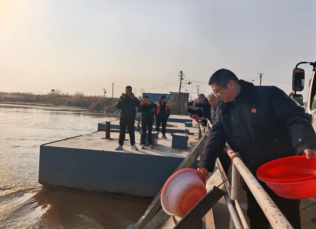 活动现场,在检察干警、相关工作人员及群众代表的共同见证下,经专业机构检疫合格的34万尾鲤鱼、鲢鱼放入黄河,为黄河水域增添了鲜活生机,也为修复水生生物种群结构、改善水域生态环境筑牢了基础。检察干警立足检察公益诉讼监督职能,结合相关案例,向在场群众讲解禁渔制度、非法捕捞法律后果及增殖放流生态意义。同时,耐心解答群众咨询,进一步强化群众生态保护法治意识,凝聚“检察+行政”协同共治合力,让生态保护理念深入人心。