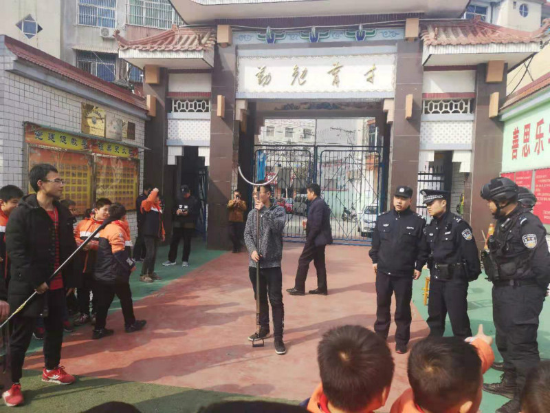 本网讯 为切实加强校园安全保卫工作,全面提高校园安保人员安全防范、维护校园安全的意识和处置突发事件的能力,确保校园师生人身安全。3月4日下午,华阴市公安局城关派出所邀请巡特警大队孙训秋教官对辖区乐育学校安保处突人员进行现场警务授课。