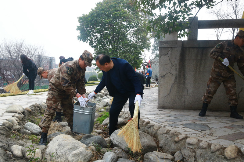 在学雷锋活动中,景区员工与部队官兵拿着劳动工具,不怕脏、不嫌累,互相协作,共同劳动,沿着游客集中的玉泉路及310国道,清扫道路两侧及绿化带内垃圾,清理乱贴的小广告。
