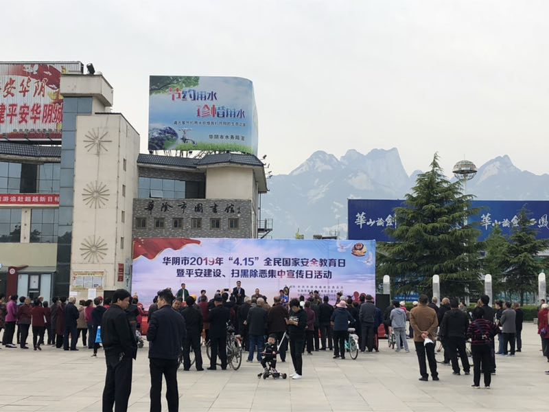 本网讯 [郑菲] 为进一步增强广大群众的国家安全意识,提升法律素养和普及法律知识,推动国家安全宣传教育工作深入开展, 4月15日上午,在第四个“全民国家安全教育日”之际,华阴市公安局在政府广场举行了法律法规宣传教育活动。