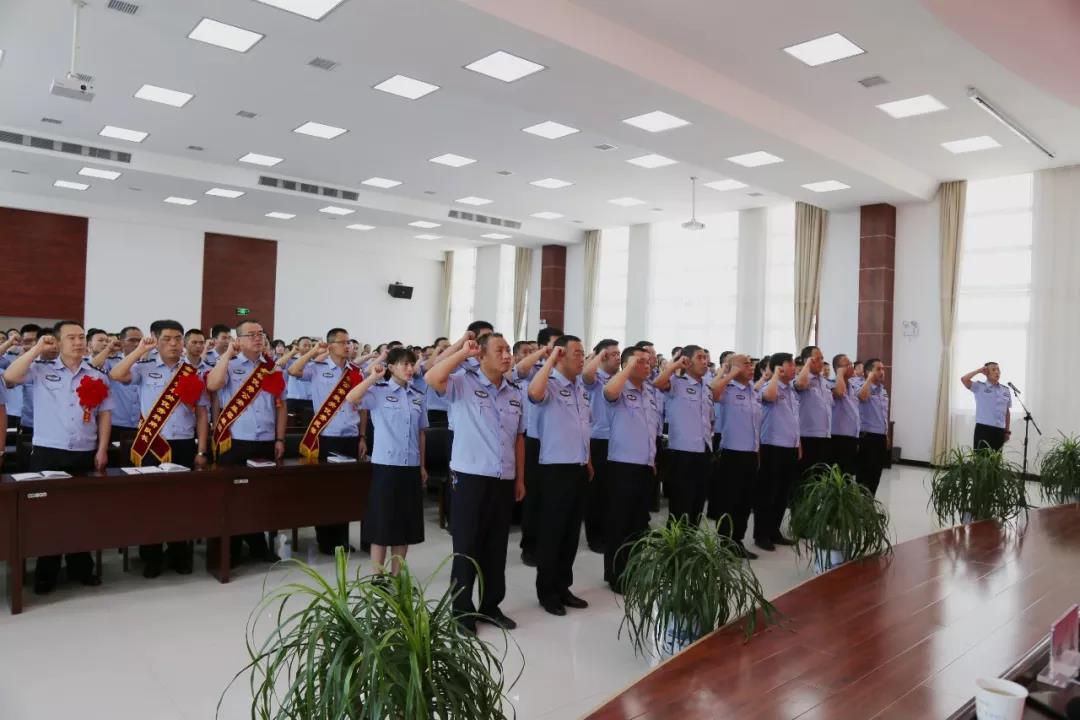 本网讯 (王伟 邵含玉) 7月1日,合阳县公安局召开庆祝建党98周年暨“七一”表彰大会,表彰先进,重温入党誓词,动员全局党员民警牢记“对党忠诚、服务人民、执法公正、纪律严明”总要求,振奋精神,忠诚担当,务实进取,为实现合阳公安工作追赶超越努力奋斗。局党委班子成员、各科所队长、指导员及150余名党员民警参加了会议。大会由局党委副书记胡彬主持。