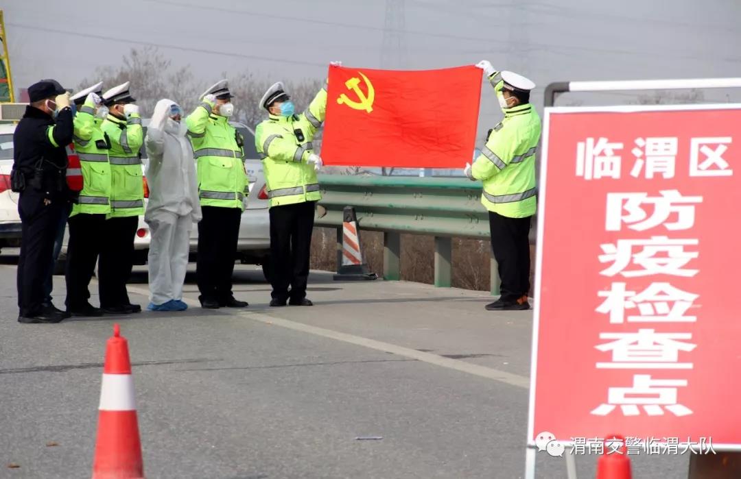 防控期间,渭南东高速、310国道疫情检查点两个临时党支部相继成立,各部门48名党员在党旗下庄严宣誓“不忘初心,牢记使命,疫情不止,不下火线”,民警王双鹏火线递交入党申请书,决心挺身而出,站在前线,用热血书写忠诚,用坚守履行使命。辅警李娜正在哺乳期仍每天往返30公里坚守一线。中队长孙向军放弃已批年假十天未进家门,副中队长张玉明母亲住院仍坚守在岗。全体民警上下一心,全力以赴,用辛勤付出共抗疫情。截至目前,两个检查站共计检查车辆7万余辆,驾驶员乘客12万人,劝返300余辆,确保了临渭东大门的绝对安全。