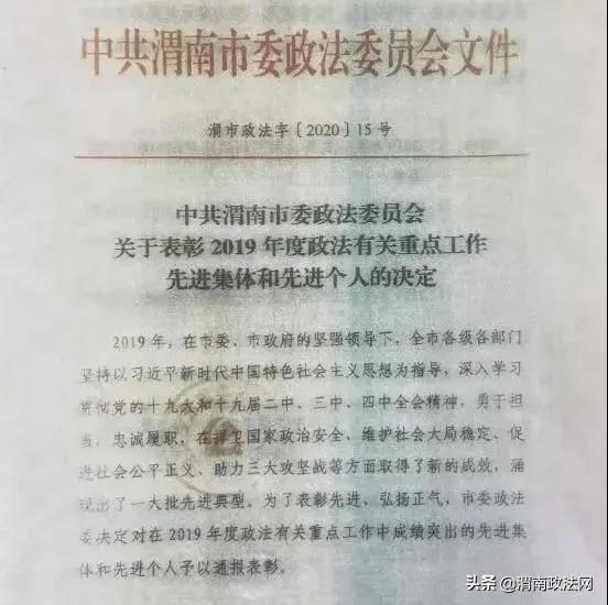 近日,中共渭南市委政法委员会印发《关于表彰2019年度政法有关重点工作先进集体和先进个人的决定》,华阴市人民检察院荣获“人民群众满意的政法单位”荣誉称号。