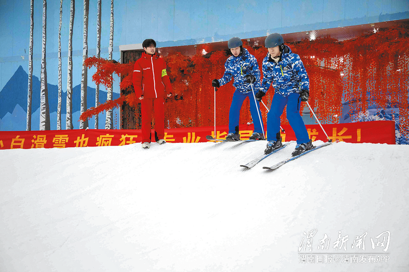 在华山冰雪世界,滑雪教练正在指导学员滑雪。记者 张向辉 见习记者 马周宁 摄